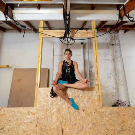 Ces ateliers ont pour objectif de fournir les bases techniqueset de sécurité de la danse verticale. Des compétences propres à la danse contemporaine et à l’acrobatie aérienne sont également développées. Le travail d’improvisation est conduit en connexion avec la surface verticale de la falaise, créant ainsi une danse étroitement liée aux éléments naturels. De plus,au cours de ces sessions, la création et l’apprentissage chorégraphique vertical du répertoire d’Ancrage_Verticale sont également abordés.