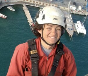 Anne, éducatrice sportive en canoë-kayak, s’est spécialisée depuis 20 ans dans les travaux sur corde, du milieu alpin aux chantiers navals. Formatrice de cordistes et arboriste-grimpeuse, elle associe soin des arbres et techniques verticales. Ses expériences l’ont menée des îles Kerguelen au spectacle aérien, où elle assure accrochages et accompagnement pour des compagnies comme Ayé Panik et Retouramont.